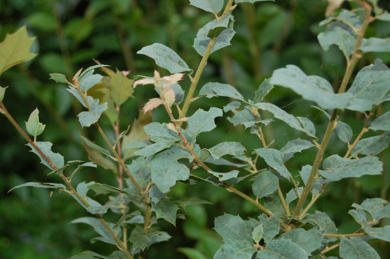 /*Quercus X turbata*/ wird immer dekorativer, ihre Blattaustriebe sind blassrosa (kommt hier nicht so gut "raus")