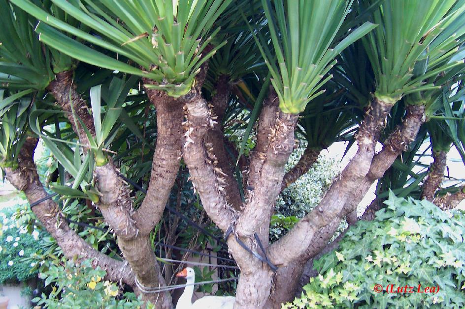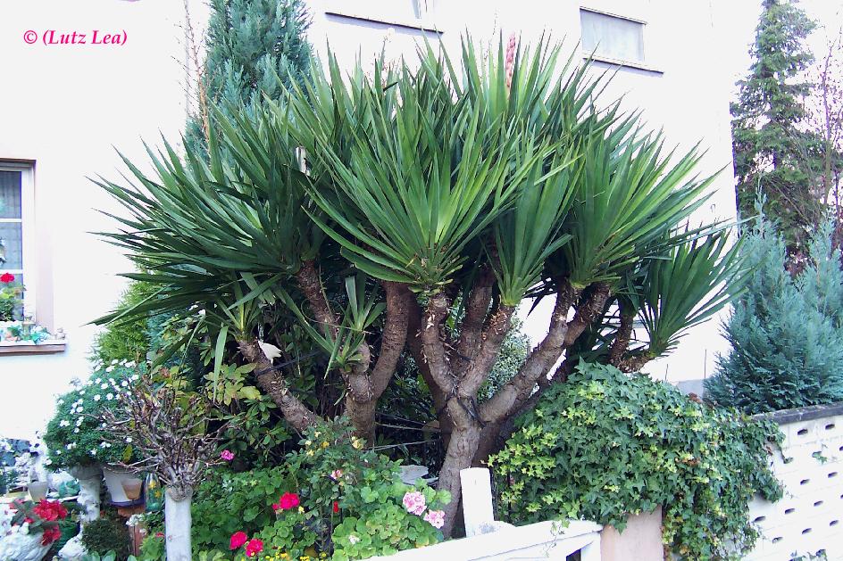 nicht schlecht gestaunt hatte ich am Freitag bei meiner "Bonner-Exoten-Vorgarten-Tour" - eine besonders große (2 bis 2,5 m hoch) und vielfach verzweigte Yucca (vermutlich 'Yucca gloriosa x 'yucca recurvifloia')!?, sah ich in einem Vorgarten. Die Besitzrein sprach von einem 20 jährigem Alter. Ich meine der Brummer könnte älter sein!?