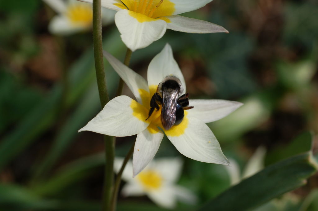 hier von Stefan schon gezeigt,und mittlerweile schon verblüht:/*Tulipa turkestanica*/ mit Gast