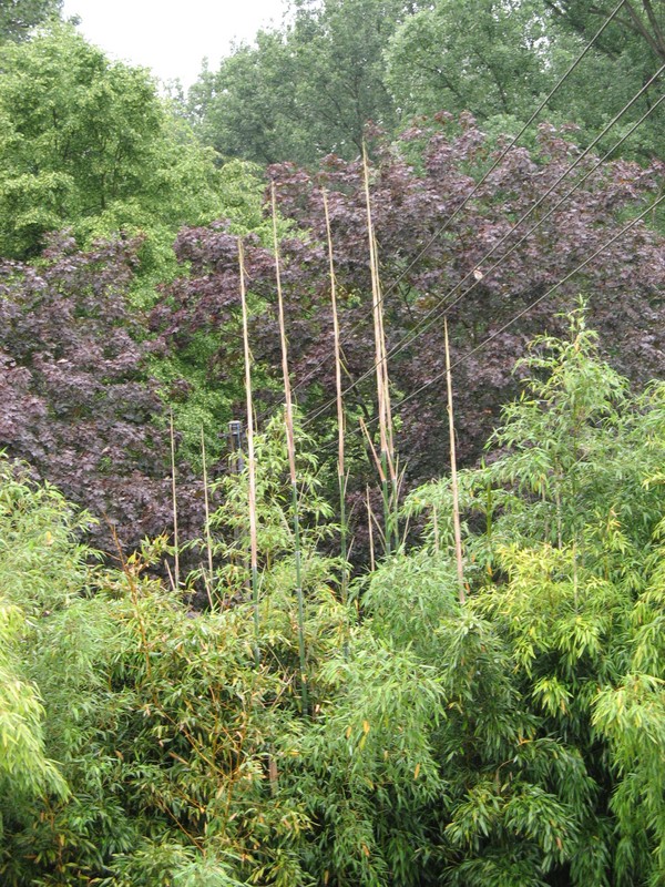 mein Phyllostachys viridiglaucescens wächst und wächst durch unsere Stromleitung hindurch und immer noch kein Ende abzusehen und der in den Bestand hineingewachse P. propinqua ist auf dem Weg hinterher.