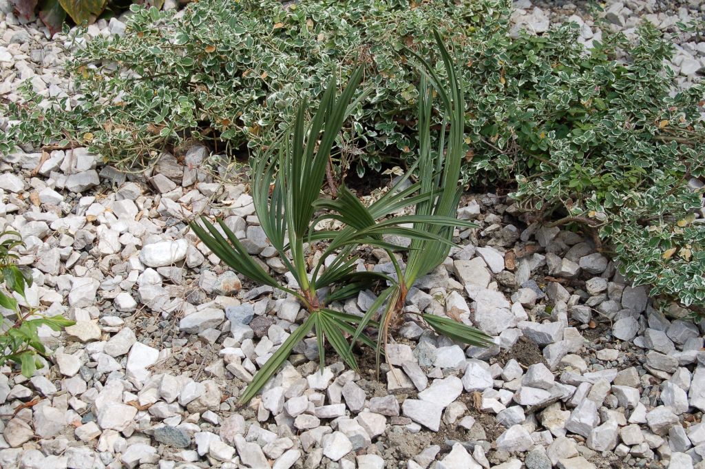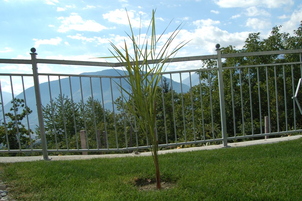 Rolf hatte mir außerdem zwei kleine Palmen(Jubaea c. und Brahea a.), mitgegeben, die zusammen mit einer Trithrinax campestris in Südtirol bei unserer Unterkunft (oberhalb von Schenna auf 700 m Höhe) ausgeplanzt wurden. Ich behalte die Entwicklung im Auge