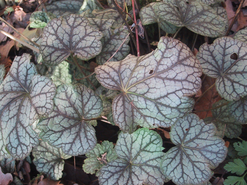 Schön gezeichnete /*Heuchera-Hybride*/,hält v.a. auch Trockenheit aus (Saxifragacea-Gew.)