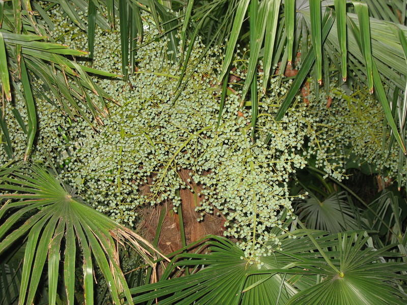bei dem Trachycarpus fortunei gleich daneben. 6 große Samenstände könnten für eine Unmenge von Nachkommen sorgen - wenn sie überhaupt noch jemand haben wollte. Ernte erfolgt hier gewöhnlich nach dem Winter
