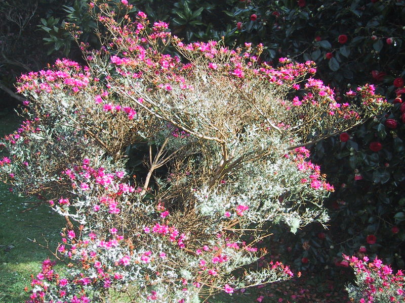 /*Azalea japonica-Hybride*/ bzw -Sorte mit Flechtenbewuchs! Sowas habe ich hier noch nicht gesehen!!!!!