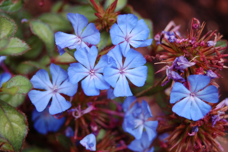 Z.Zt. blüht in zartem Ultramarin-Blau /*Ceratostigma willmotianum*/, mit dem ich schon vor Jahren immer wieder meine Schwierigkeiten hatte.Nach ein paar Jahren verschwindet er einfach, ohne mir zu sagen, warum!