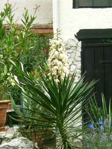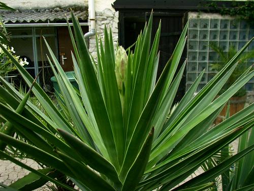 hier die Blütenentwicklung von Y.aloifolia.Die entstand zeitgleich mit Y.gloriosa,die aber noch nicht ganz soweit ist.Y.aloifolia schiebt eine relativ kurze,aber sehr kompakte Blüte,im Vergleich zu gloriosa.oder recurvifolia