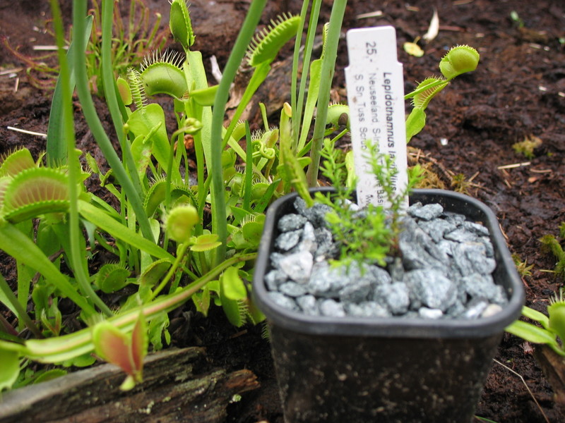 ..gilt Lepidothamnus laxifolius. Ich dachte mir, so ein paar ausgefallene Koniferen der Südhalbkugel passen gut als Umpflanzung meines Hochmoorbeetes. Nur scheint mir hier ein gewisses Ungleichgewicht der Größenverhältnisse vorzuliegen (selbst der Autofokus meiner Digicam ignoriert das eigentliche Objekt)? Hoffentlich schnappt da nicht die Venus-Fliegenfalle zu!
