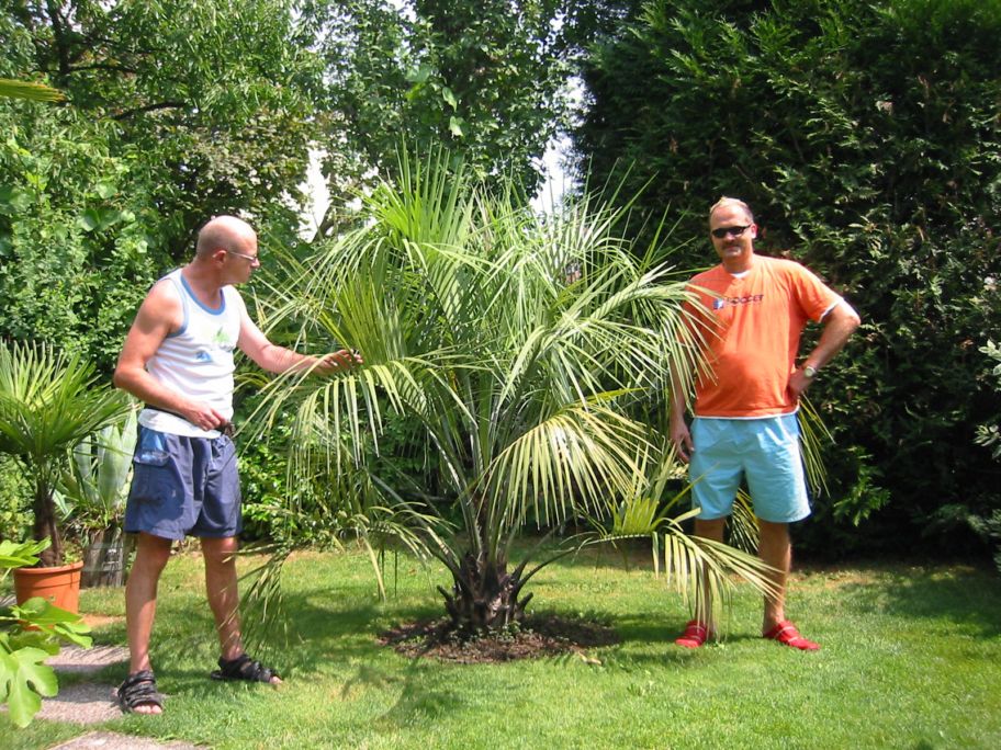 Hier die Kollegen(von Links) Manfred und Volker neben meiner seit März 02 ausgepflanzten Butia C.
