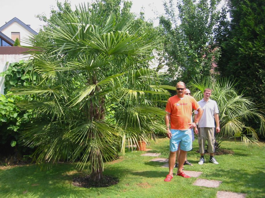 Volker und Martin neben einer Trachy die ich im März 2000 mit 40cm Stamm ausgepflanzt hatte und die seitdem beachtlich zulegte.