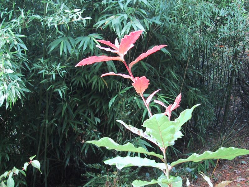 Hier noch einmal der rötl. Gipfeltrieb vor der Bambushain-Kulisse
