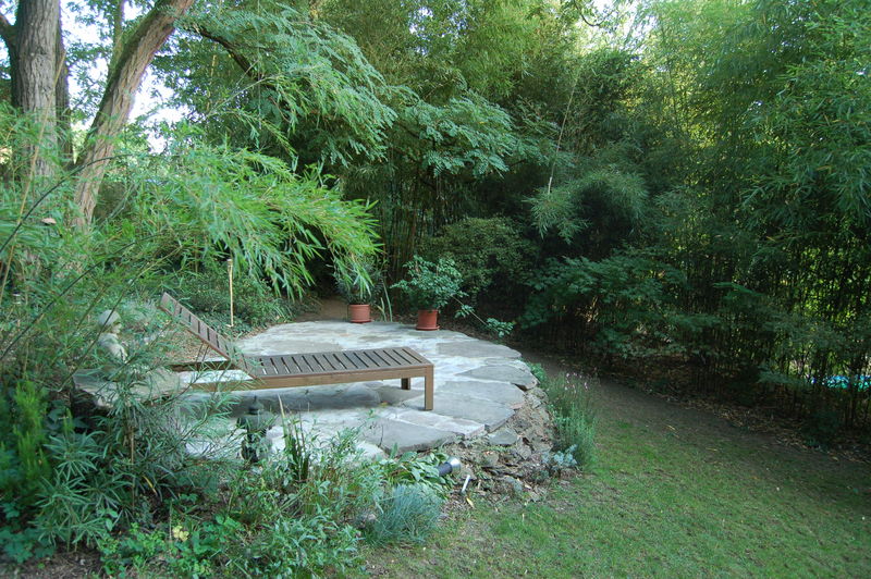 /*Phyllostachys edulis*/ zusammen mit Lomatia longifolia am Meditationsplatz