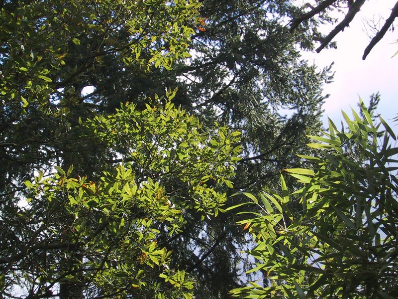einer meiner ältesten Gartengehölze (ca 45J alt) zusammen mit Bashania fargesii im Gegenlicht
