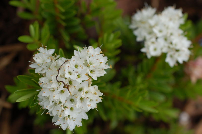 /*Hebe diosmifolia*/ ziert nicht nur durch ihre Blüten