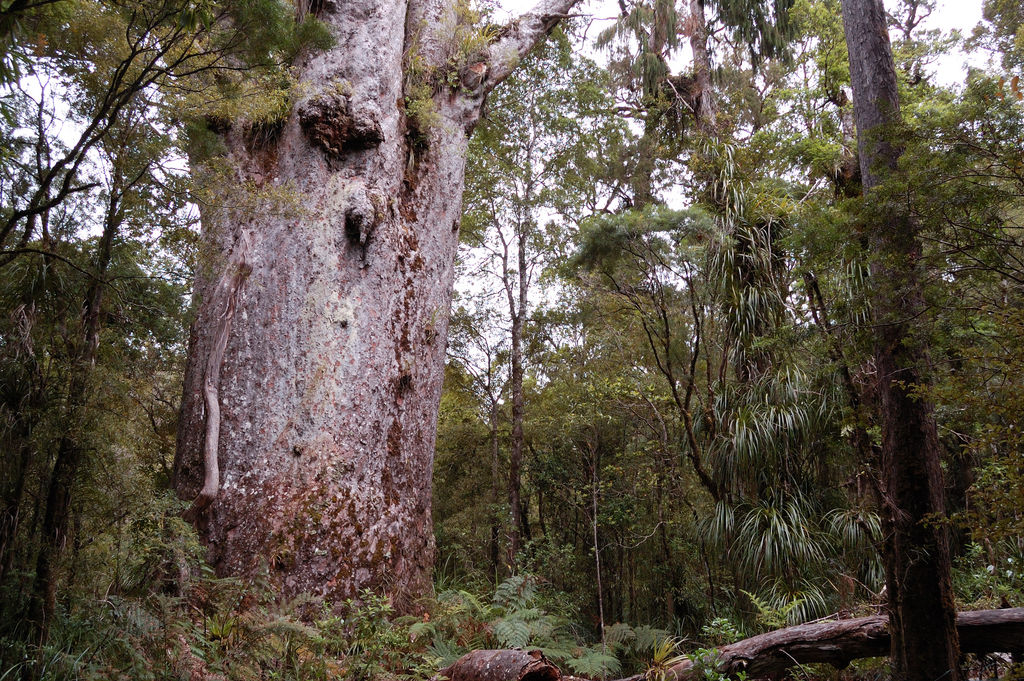 Kaurie sind in der Jugend sehr schmal und gehen erst im Alter (über 2000 Jahre) in die Breite. Pro Baum wurden z.T. über 500 Pflanzenarten (in,um und auf)gezählt. Die Rinde macht im grünen Dschungel einen fast marmorhaften,weißen "felsigen" Eindruck
