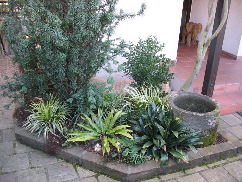 Die 'Variegata' sollte einen geschützten Standort bekommen, da die weißbunten Blätter im Winter eher leiden als die grünblättrigen Formen. Würde sich in der Ecke als Unterpflanzung der Nandinas bei Dir eventuell gut machen.