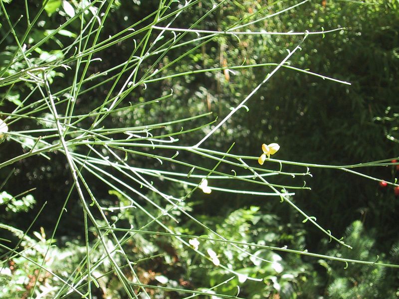 Damit du den Unterschied zu Spartium einmal siehst:hier ein kl. Bild von Genista aetnensis(allerdings ist die Blütenausbeute noch sehr gering u. das "Bäumchen" gerade mal 1m hoch!)Die Ästchen sind im Gegensatz zu Spartium 3X so zart u. extrem besenartig dünn.Noch sieht er nicht so beeindruckend aus!! Warten wir mal ab!