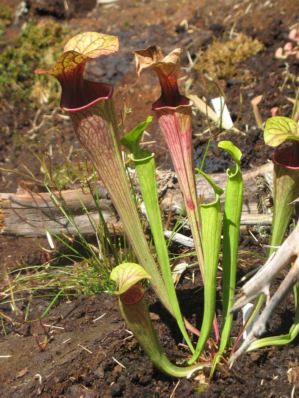 Dekorativ, obwohl erst vor wenigen Tagen gepflanzt: /*Sarracenia oreophylla*/
