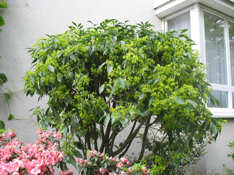 mein spezieller Liebling unter den Spindelsträuchern hat wieder Blütezeit: Euonymus myrianthus. Die Blüte ist nur ein Aspekt, die lang über den Winter haftenden orangefarbenen Früchte ein anderer und aufälligerer - und immergrün ist der Strauch ohnehin