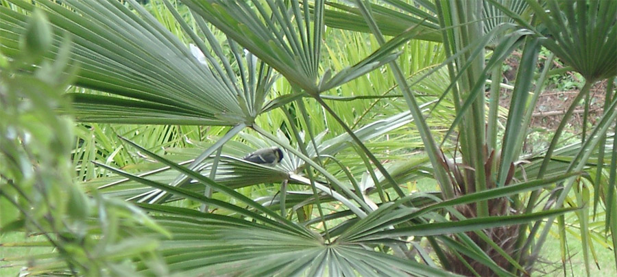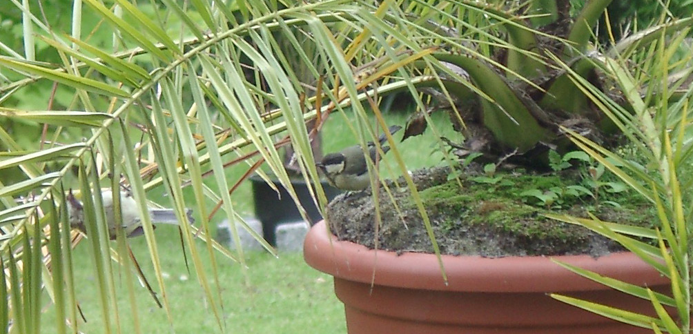 Nach dem sie sich zunächst nur an die Töpfe gewagt haben, balancieren sie jetzt sogar auf den Blattspreiten, und picken emsig (hoffentlich schädliche) Insekten heraus. Leider waren die Aufnahmebedingungen nicht günstig. (3 Bilder)