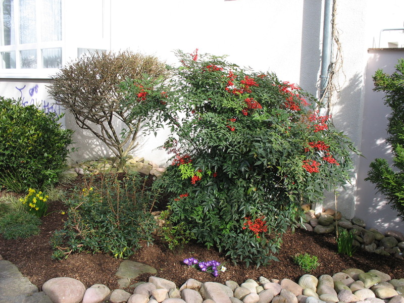 Vorne links noch mal eine immergrüne Daphne, vermutlich D. retusa