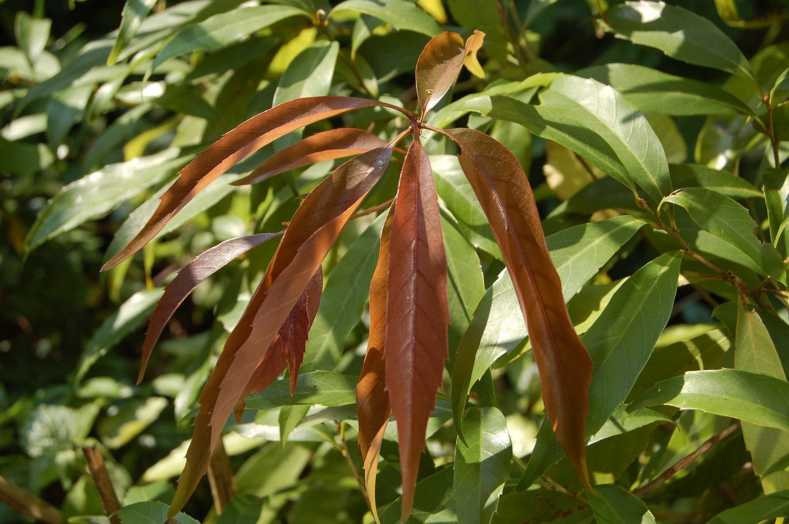 /*Quercus salicina*/ hat einen interessanten braun-violetten Blattaustrieb#AM