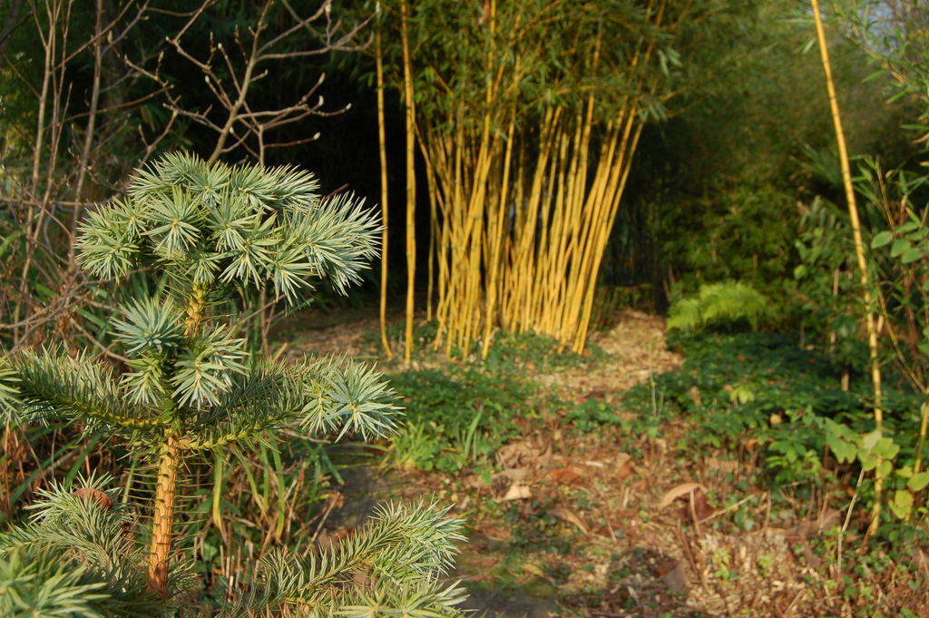 /*Cunninghamia lanceolata Glauca*/ vor Phyllostachys aureosulcata Aureocaulis