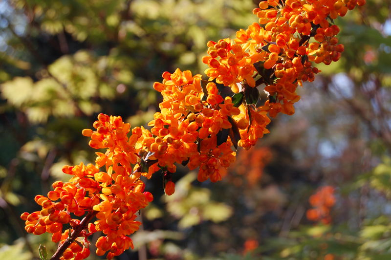 nach Berberis linearifolia blüht jetzt in exotisch aussehenden bis über 2m langen schmalen "Rispen" /*Bereberis lologensis Apricot Queen*/