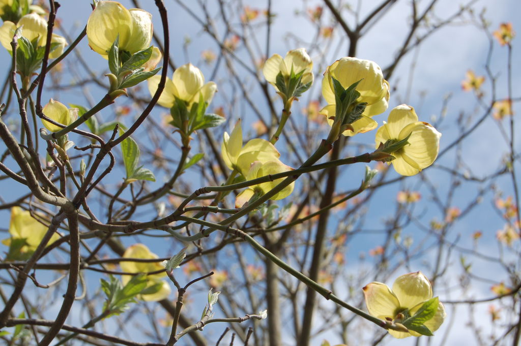/*Cornus 'Eddies White Wonder'*/ sieht am Anfang der Blütenentwicklung leicht gelblich aus
