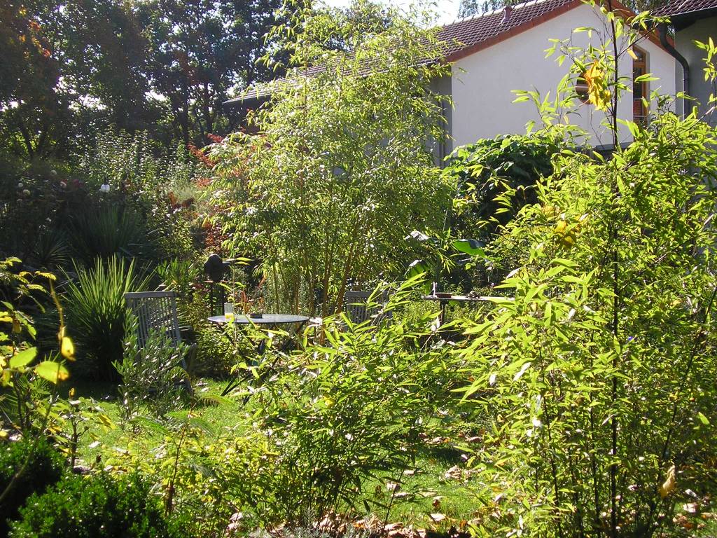 In jedem noch so kleinen Garten sollte es verschiedene Blickachsen geben, in meinem Gärtchen hier die Ph. nigra- Moso- Vivax- Linie.![]()