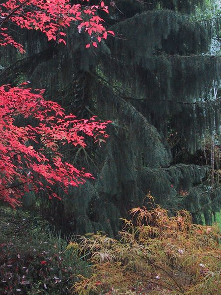 Links /*Acer griseum*/,der Zimtahorn,vorne re /*Acer palmatum Red Pygmy*/ und hinten die wunderschöne /*Picea breweriana*/