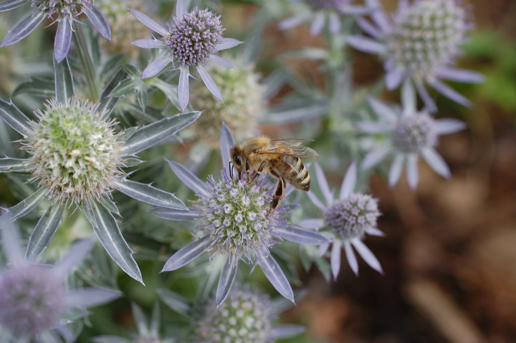 Biene Maja auf/*Eryngium alpinum-Hybride*/