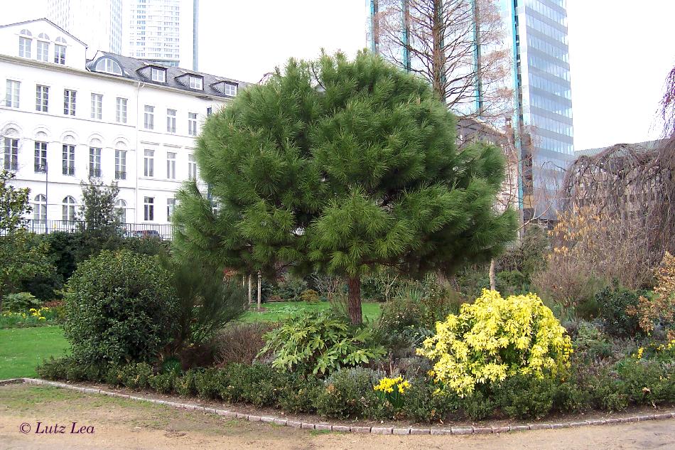 Optimaler milder und solitärer Standort für diese Mittelmeer-Pinie 'Pinus pinea' im "Nizza-Ffm." - dürfte mal ein riesen Brummer werden!