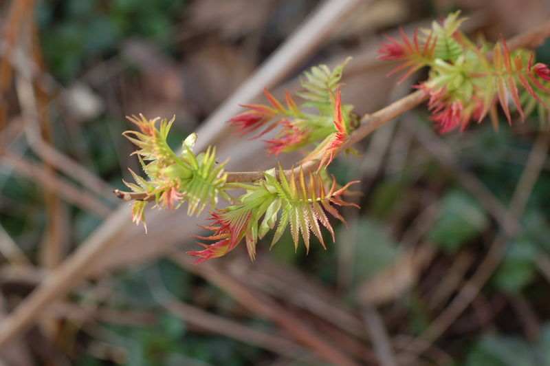 eine der absolut winterharten Gehölze, eine /*Sorbaria sorbifolium-Selektion*/ mit rötl. Blattaustrieb!