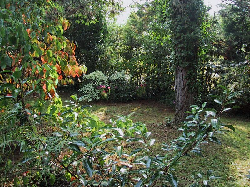 Zum Schluss noch einmal die schöne Herbstfärbung von Cornus florida u. C. nuttallii,davor die lackartig glänzenden Blätter von Viburnum ordoratissimum Awabuki