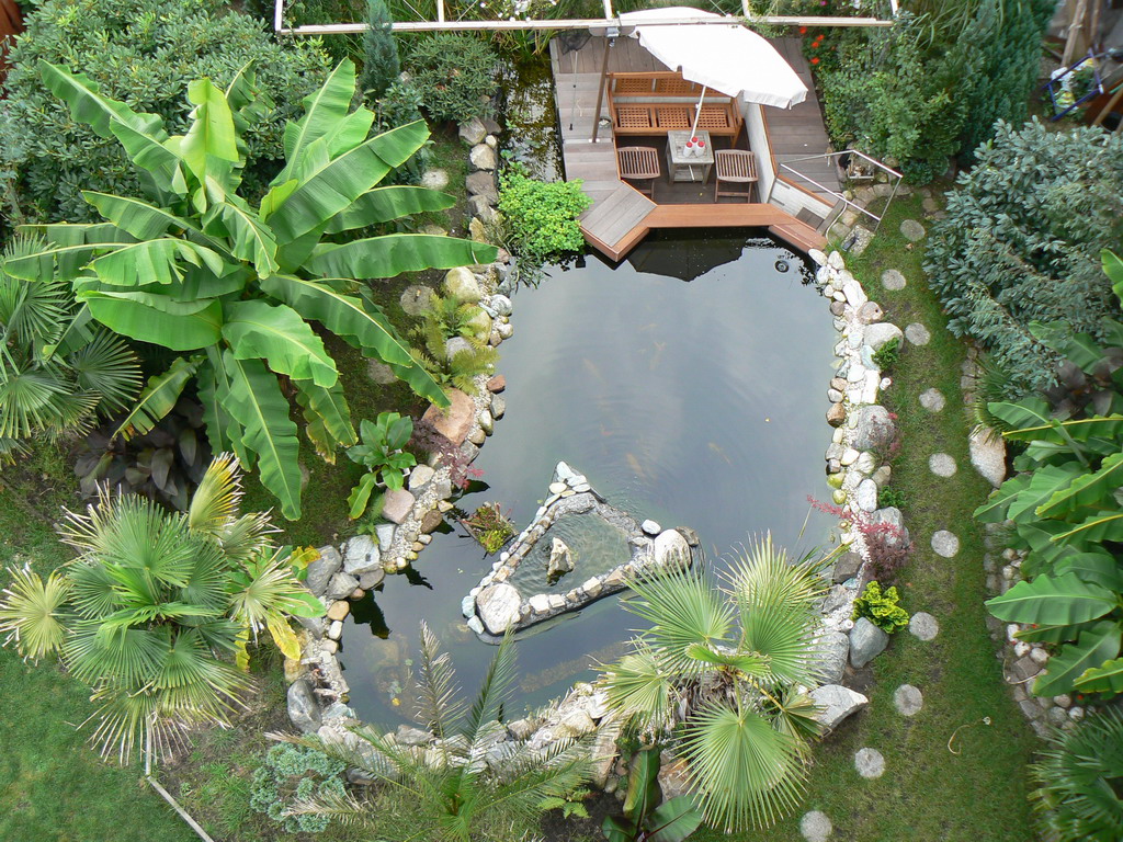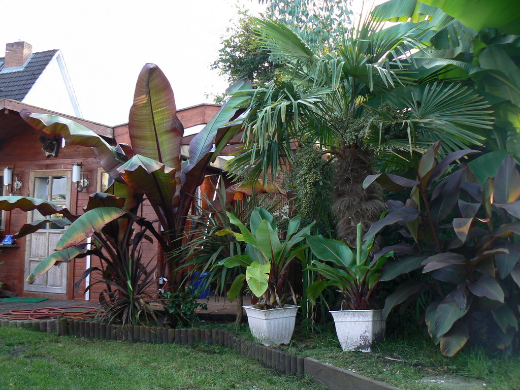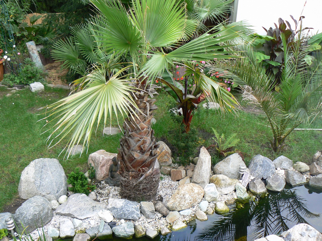 Ich bin seit 2003 auch infiziert mit dem berühmten Virus. Seit 2004 habe ich diverse Trachys, Musas, Yuccas, Cordys, Kakteen usw. ausgepflanzt. Seit 2007 habe ich dem ganzen noch die Krone aufgesetzt und mir einen Koi-Teich gebaut. Was soll ich lange schreiben, Bilder sagen mehr als tausend Worte.