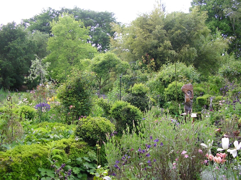 Blick in den Garten, hinten Mitte der Hain von Phyllostachys nigra boryana