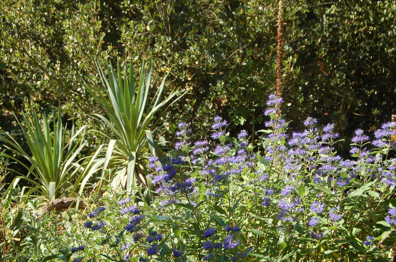 über /*Caryopteris clandonensis Heavenly Blue*/ Im Hintergrund alter Quercus phillyreoides#AM