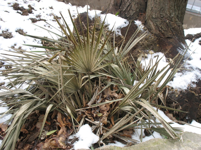 !!! Meine vor mindestens 16 Jahren ausgepflanzte - und damit dienstälteste Palme im Garten - Chamaerops humilis hats zum wiederholten Male oberirdisch total weggeputzt. Es handelt sich um die grüne Normalform. Nicht dass jemand auf den Gedanken käme, das wäre irgendeine rare Silbervarieante namens "Winterschimmel" oder ähnlich
