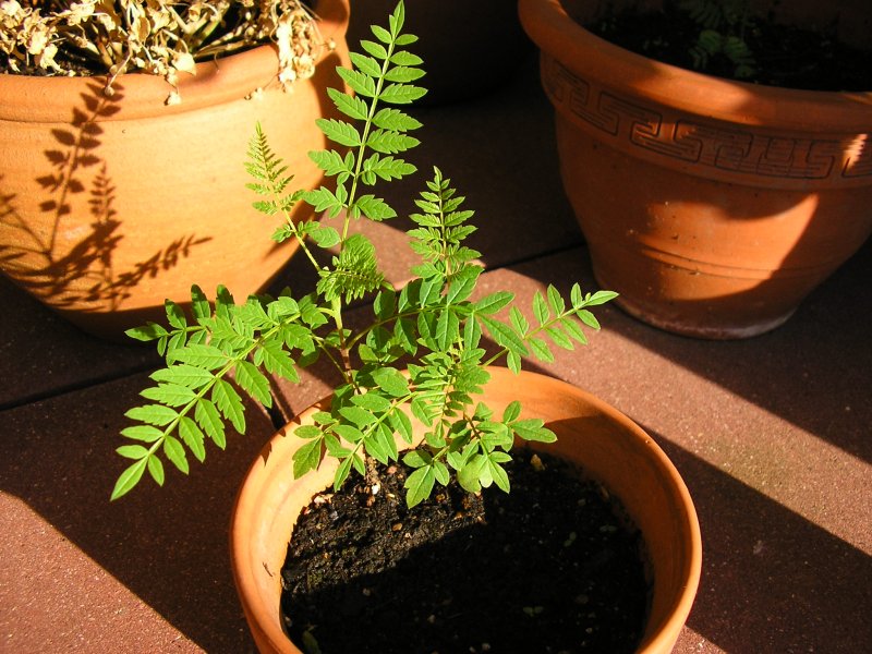 langsam ist bei den Sämlingen das typische Blattbild von Jacaranda mimosifolia zu erkennen.