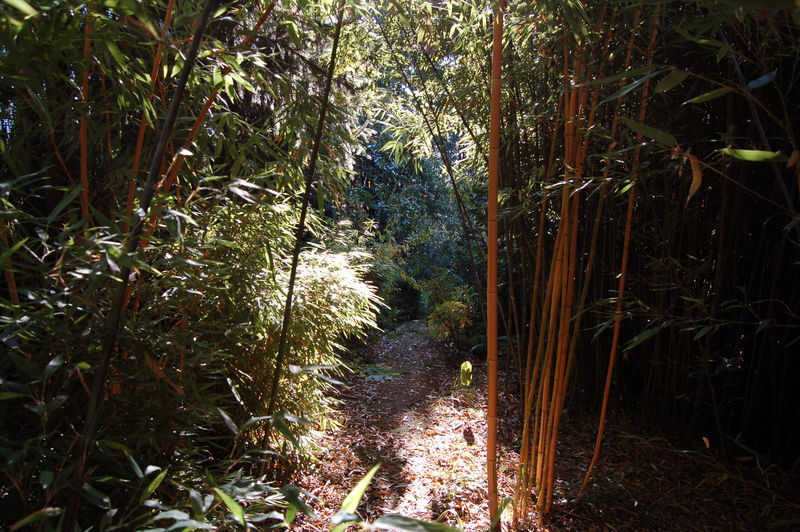 mit /*Phyllostachys vivax Aureocaulis*/ rechts, li Fargesia dracocephala