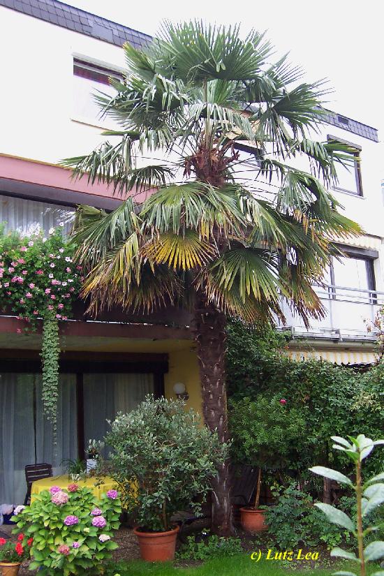 seit August 2004 ist mir eine bereits im Jahre 1974 (!!!) ausgepflanzte Hanfpalme 'Trachycarpus fortunei' im nördlich von Frankfurt am Main gelegenen Eschborn, im Stadtteil Nieder-Höchststadt, bekannt.