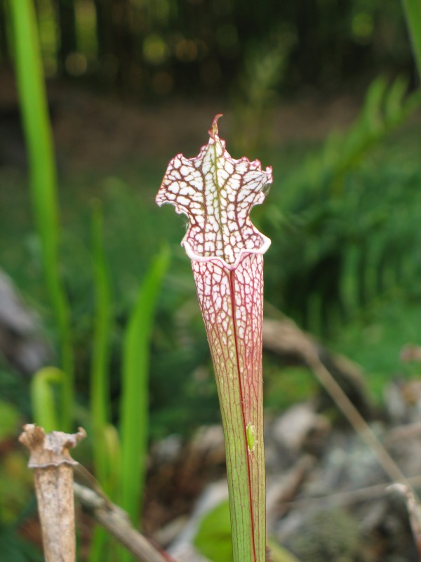 Alles andere als langweilig, die Schlauchpflanzen Sarracenia ssp. aus dem Südosten Noramerikas. Da tut sich im Hochmoor das ganze Jahr etwas. Der Neutrieb und Blüte der einzelnen Formen zieht über viele Monate hin. Vom Farbeffekt ganz zu schweigen, unterstützt von vielen anderen Moorpflanzen bis hin zu den Torfmoosen.