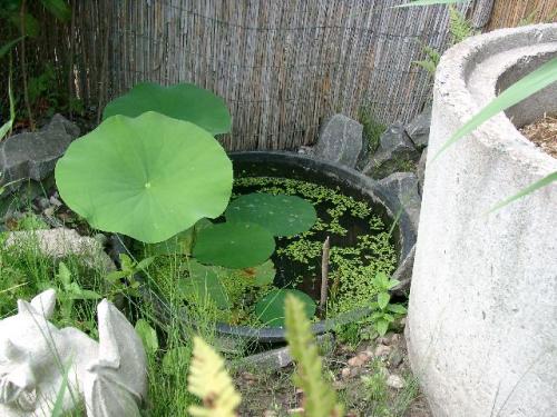 Hier nun der echte Lotos, hat schon die ersten beiden stehenden Blätter: