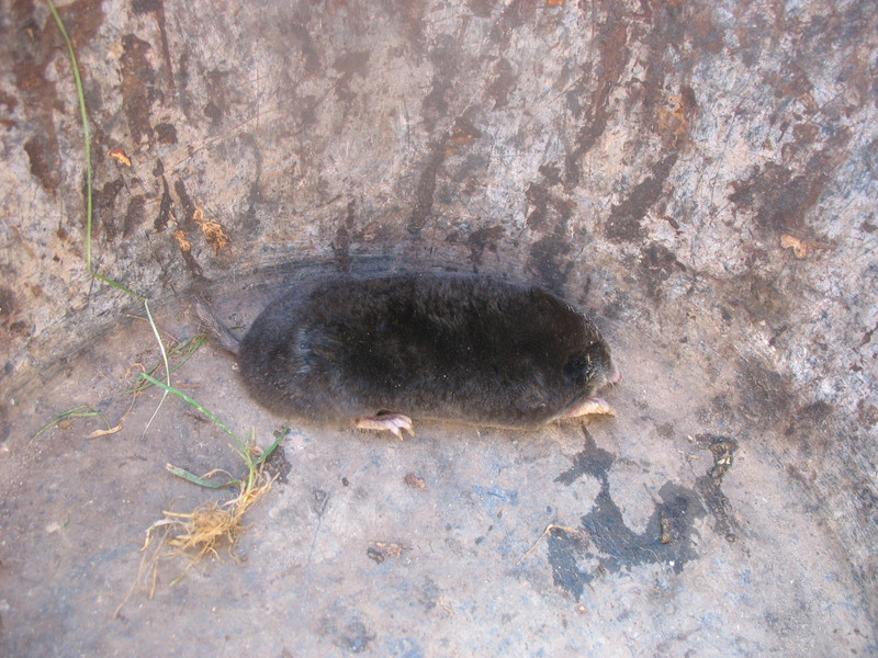 Am Samstag Vormittag sah wieder einmal wie ein Erdkegel im Rasen in die Höhe wuchs, es wackelte und ich hatte sofort die - seit Monaten bereit stehende - Forsthacke in den Händen. Unser Maulwurf hatte richtig Glück. Ich hacke unter ihm durch und so kam er, recht geschockt aber unverletzt, ans Tageslicht und war unversehens im Kübel. Eigentlich ein recht putziges Tierchen, wenn er nicht gerade in meinem Garten wühlt![]()