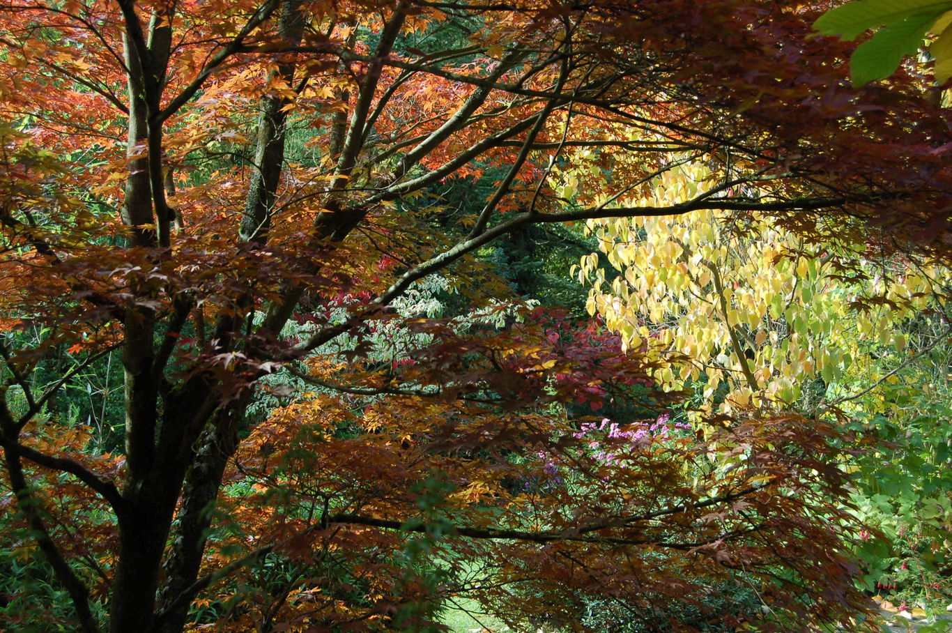 sieht's fast noch besser aus, obwohl /*Acer palmatum Atropurpureum*/ seine volle Leuchtkraft noch nicht erreicht hat!#AM