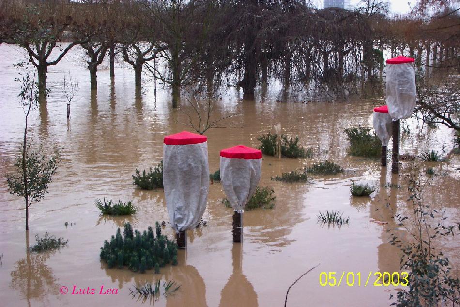 so richtiges Hochwasser gab es zuletzt im "Nizza-Garten" am Frankfurter Mainufer am 5.01.2003 (!!!).