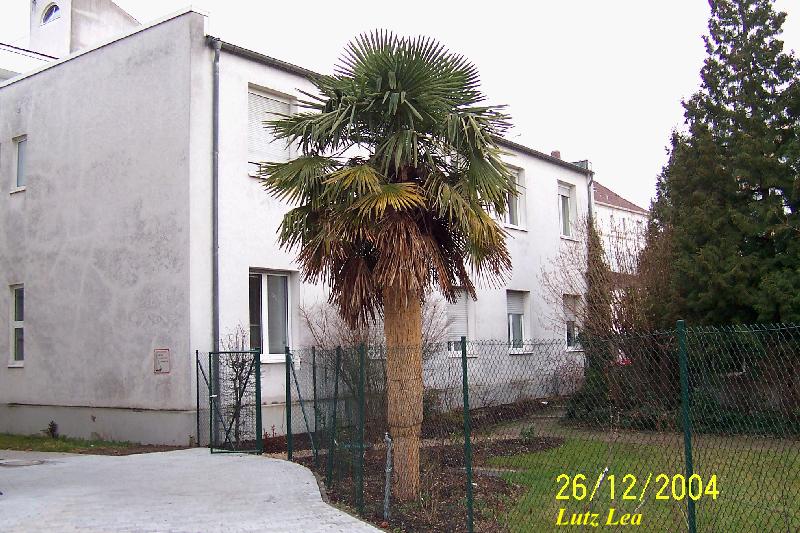 eine seit dem Jahre 1986 ausgepflanzte 5 m hohe Hanfpalme 'Trachycarpus fortunei', in Viernheim, in der Seegartenstraße 4, auf dem Gelände des St. Josef-Krankenhauses, würde ich als integriert und weitgehend so aklimatisiert bezeichnen, dass man bei diesem Exemplar von einer Freilandpalme sprechen kann, die es sozusagen "gepackt" hat, mit den Unbillen der dortigen Witterungsverhältnisse zurechzukommen (!!!).