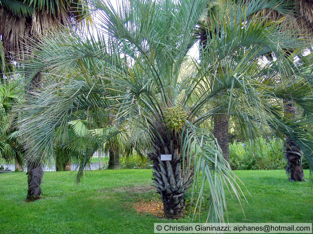 /*Butia yatay var. paraguayensis*/ Fruchtendes Exemplar in Südfrankreich