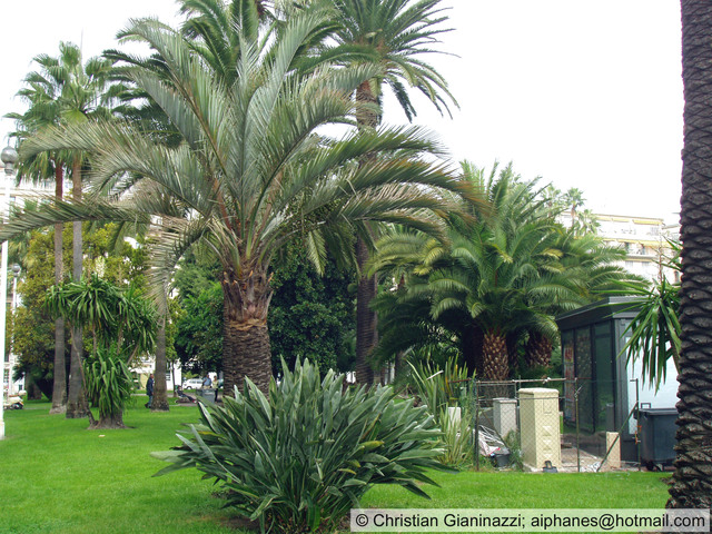 /*Butia capitata*/ Fruchtende Exemplare in Südfrankreich (sehr gute Fruchtqualität)