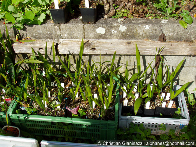/*Butia eriospatha*/ Verschiedene Jungpflanzen, die ich aus Samen (aus höheren Lagen Südbrasiliens) gezogen habe. Sind nach ersten Beobachtungen wüchsiger als B. capitata